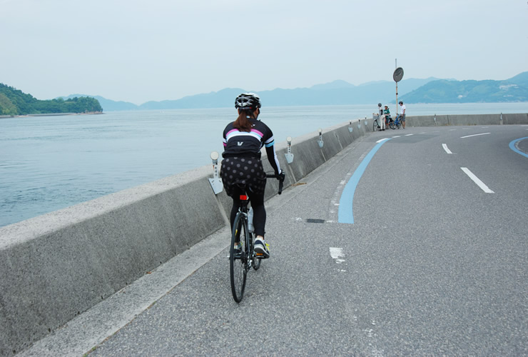 椋名(むくな)というところを通ると、ひなびた小さな漁港があり、すごくいい雰囲気でした。数キロ海沿いの道をのんびり走ります。ちなみに、しまなみ海道を縦断する場合は、島の真ん中を突っ切る国道317号線を走ることが多いようです。でも今回は距離はあるけれど比較的交通量の少ないコースを選びました。車を気にせずに景色を楽しみながらマイペースで走りたい方にはオススメですよ。