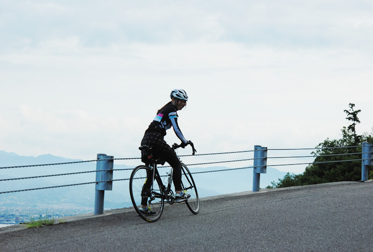 さてさて、最後に、とっておきのコース!亀老山ヒルクライムです。最後の最後にこんなハードなことをする私って? 実は途中何度も止まって休憩してしまいましたが…何とか亀老山制覇!! 坂の途中に展望スペースがあってそこがゴールなのだと思っていたらまだ先があってビックリしたり。(でもそこから頂上まではわずかな距離でした) 頂上の展望台では絶景が待っていました。このすばらしい景色! 感激しました。展望台は恋人たちの聖地になっているそうです。汗だく&足ガクガク&フラフラの私とは対照的に、夕日を見にたくさんのカップルがいて、ちょっと複雑な気分(笑)