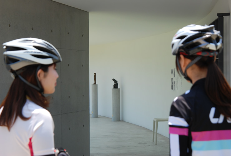Right next to Omishima Furusato Ikoi no Ie is a fashionable building housing the Iwata Ken Haha to Ko no Museum (Ken Iwata Mother and Child Museum). Featuring pieces mostly based on the theme "Mother and Child," the museum displays the sculptures of Ken Iwata, who is known for his warm artistic style. The display area is mostly outdoors, and there are benches to sit on. I recommend enjoying the sculptures at leisure while feeling the sun and the breeze of the Seto Inland Sea. The building, designed by architect Toyo Ito, is also worth appreciating.