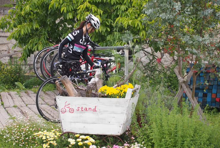 About two kilometers from Paysan is Yoshiumi Rose Park. If it's rose season you definitely have to go to this spot! 3,500 bushes representing 400 varieties of rose from all around the world bloom beautifully in the garden. It just so happens that right now (the end of May), the roses are at their peak. I found myself entranced by the beautiful blooms as the scent of roses floated about on the air. I really enjoyed the elegant feeling. Visiting this rose garden is completely free, by the way. There are a couple shops and benches, as well as a restroom, so I recommend stopping by if you want to take a break from cycling.