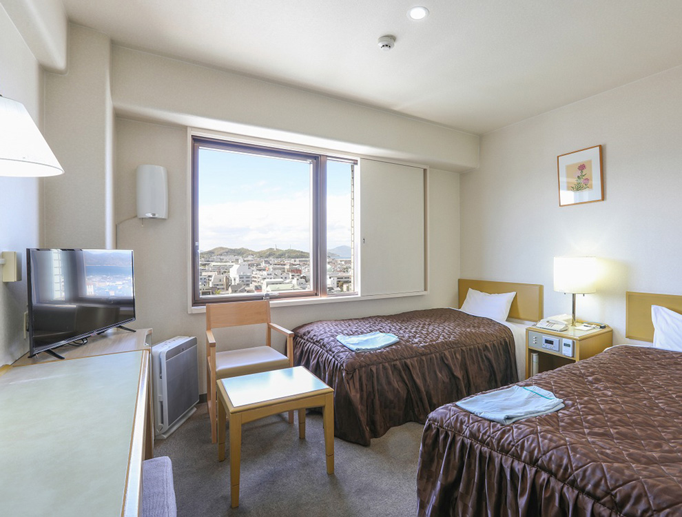 JR今治駅から徒歩5分ほどに位置し、ビジネスの拠点に最適です。また、歴史ある今治お観光スポットへの出発点としても、四国遍路の旅の拠点としても、便利にご利用いただけます。